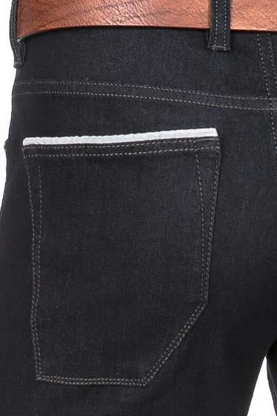 Gesäßtaschen in angepasster Form gearbeitet, damit die Nähte nicht auf dem Sattel stören