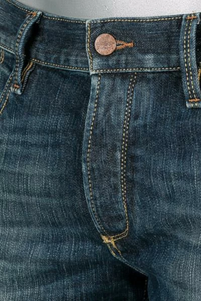 Diese Jeans mit geknöpftem Verschluss ergänzt Ihre legeren Looks, mit besonderem Denim Charme! Die strapazierfähige Japan Denim-Qualität mit dem charakteristischen roten Faden in der Webkante, zeigt sich an der Münztasche sowie an der inneren Seitennaht und zeichnen Sie, als Jeanskenner und -liebhaber für Premium Denim Qualitäten aus. Perfekt für alle, die gekrempelt Ihrem Outfit einen lässigen Akzent verleihen wollen.