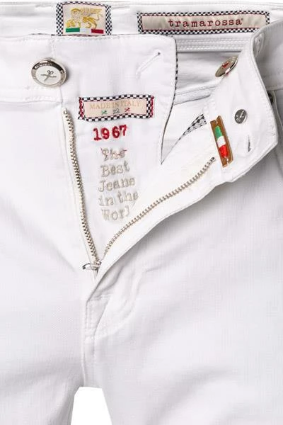 Moderne italienische Kreation für personalisierte Looks: Diese Jeans aus softem, bequemen Denim mit hohem Stretch-Anteil, ist konzipiert für einen kontemporären Casual Stil. Aufwendig gearbeitete Zierdetails und eine cleane Optik sorgen für urbanes Flair und ein stilvolles Auftreten. Die einzeln verpackten und parfümierten Modelle beweisen, was für erstaunliche Jeans die Tramarossa ist – tragen Sie sie mit Stolz!
